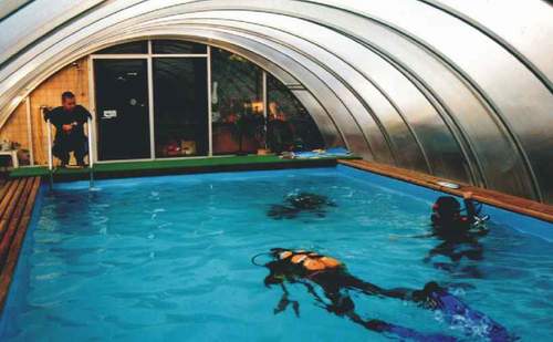 Die Grundausbildung wird im hauseigenen Pool durchgeführt. Da dieser überdacht und beheizt ist, können wir unseren Tauchschülern eine kurze Lehrgangsdauer von 7 bis max. 14 Tagen anbieten.